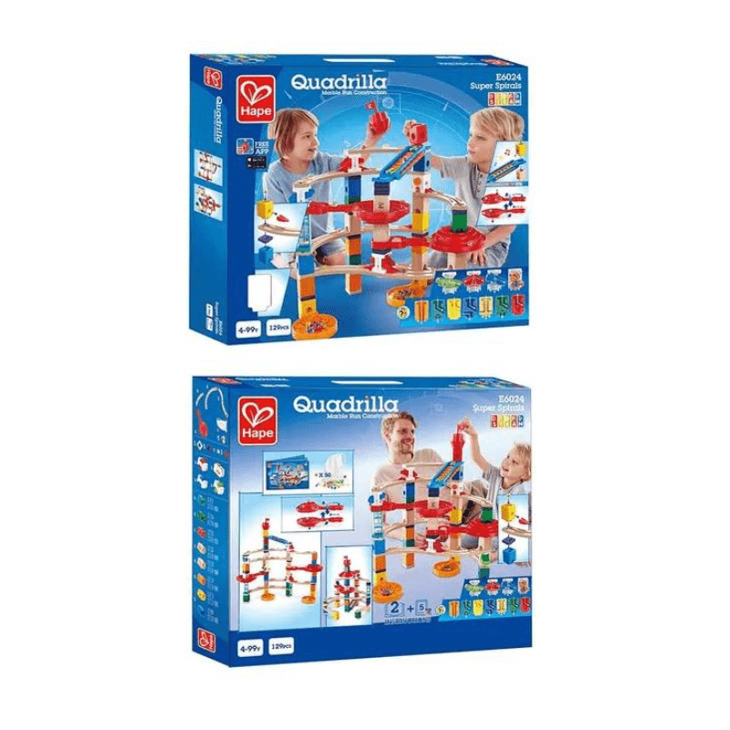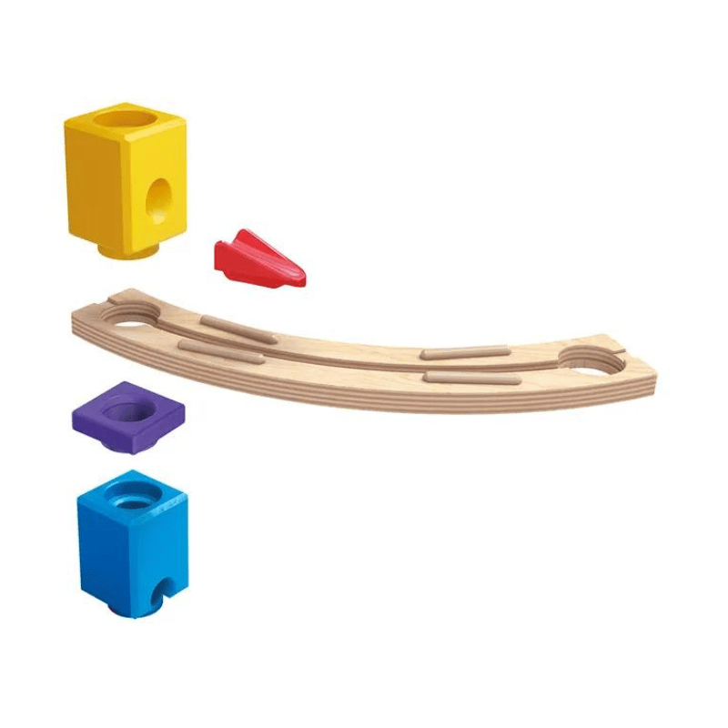 Get more spinning and more surprises with this deluxe Quadrilla set. Includes a xylophone rail that plays a tune as marbles run over it, two double-sided spiral twists, plus four special control blocks to randomly distribute marbles.