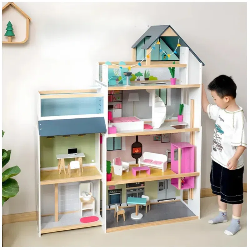 Kids Wooden Doll House Playset