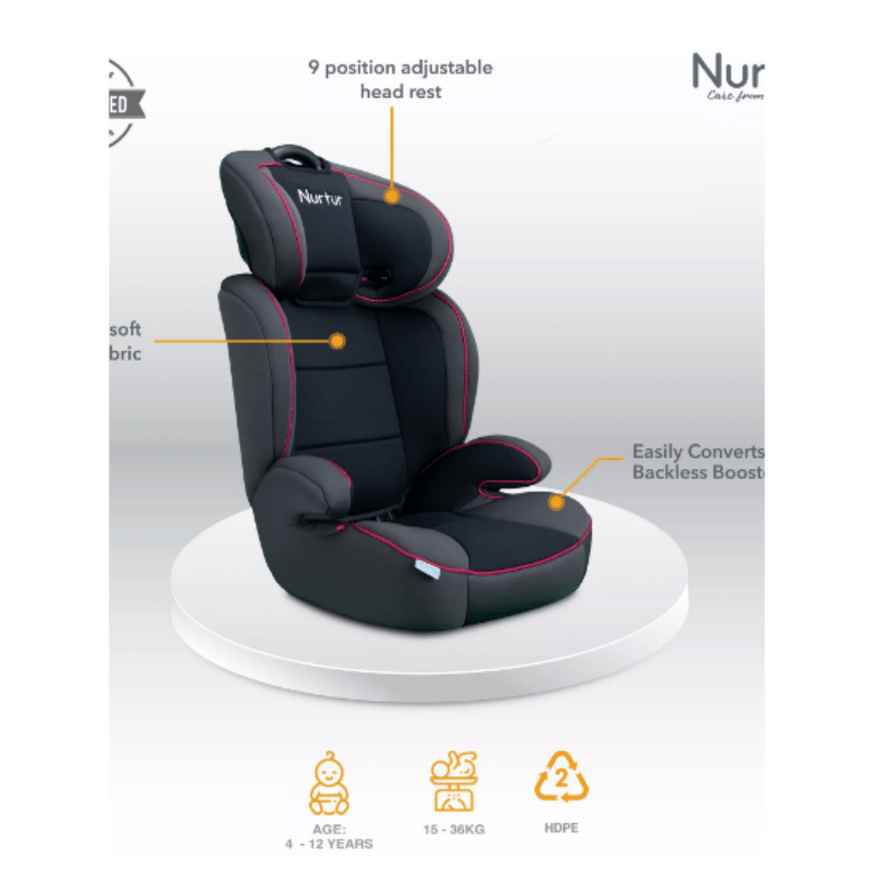 Are you seeking a car seat for your child that is more inexpensive and convenient? You’ve come to the correct spot if you’re looking for a car seat with a 5-Point Safety Harness, adjustable headrest, extra protection, and the ability to convert to a booster seat. A 5-point safety harness that can be removed while driving keeps your baby/child safe and secure. It is secured around the waist, crotch, and shoulders to limit the risk of injuries in the event of an accident. , The harness may be loosened and lightened by simultaneously pressing a button and either pulling the harness to lengthen or tugging the front strap to tighten, assuring a secure fit every time. The Nurtur Jupiter car seat headrest can be adjusted to 9 different positions. You’ll be able to find the perfect fit for your child as he or she gets older, making long travels a little more comfortable. Plus this car seat is convertible into a booster seat. , , Simply fold it backward, remove the belts and there you go. A brand new booster seat. Also included is “Side Impact Protection,” if your car swerves off the road, the side protection ensures that your baby/kid does not contact the doors or anything sharp. Cushions in the seat and lumbar area have been improved. Side additional cushioned protectors protect the child’s head and shoulders. Shock-absorbent shoulder strap protectors. , The seat padding can be removed and washed. Thanks to the large interior, soft pillows, and delicate, pleasant-to-touch material, your child will be able to relax and enjoy the sights outside the window. A one-of-a-kind pad that improves your baby’s comfort during car travels by allowing for optimal air circulation. Countless parents consider car seats to be necessary, and we believe you must trust them to endure as long as possible once you’ve chosen one. , The Jupiter convertible car seat is a multi-stage car seat that can accommodate both newborns and older children. The Nurtur Jupiter car seat easily transforms into a booster seat. Simply snap the car seat back, remove the belts, and you’re done! A lovely new booster seat. You are free to use your child’s favorite character’s car seat for as long as you like. There’s no need to buy another booster seat! Your child is interested in other colors? Scroll down below to find out more options.
