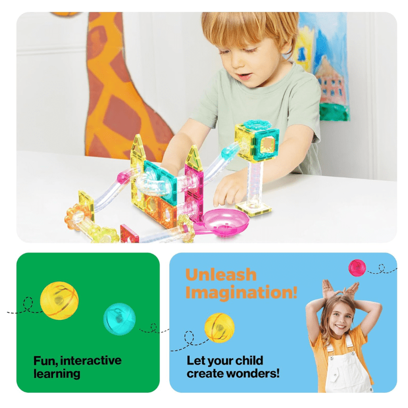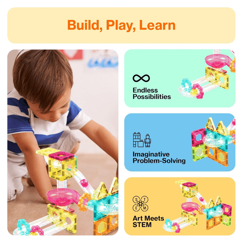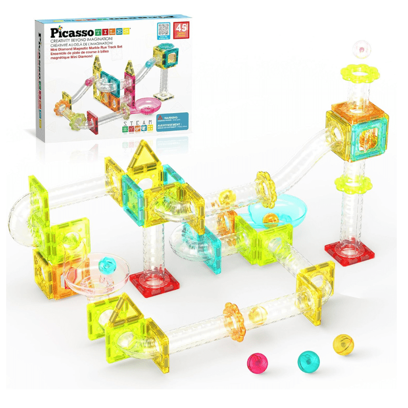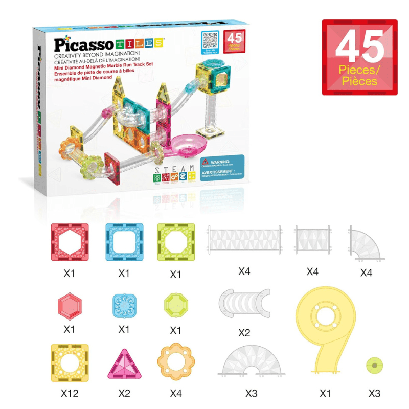 Picasso Tiles – Magnetic Mini Diamond Marble Run Track Set – 45 Pcs