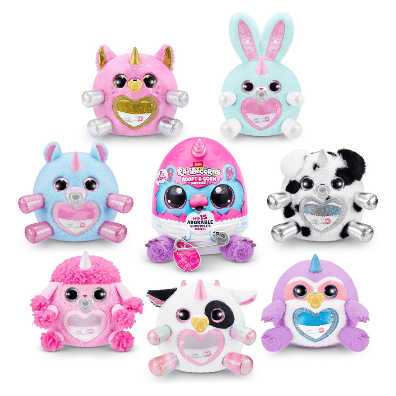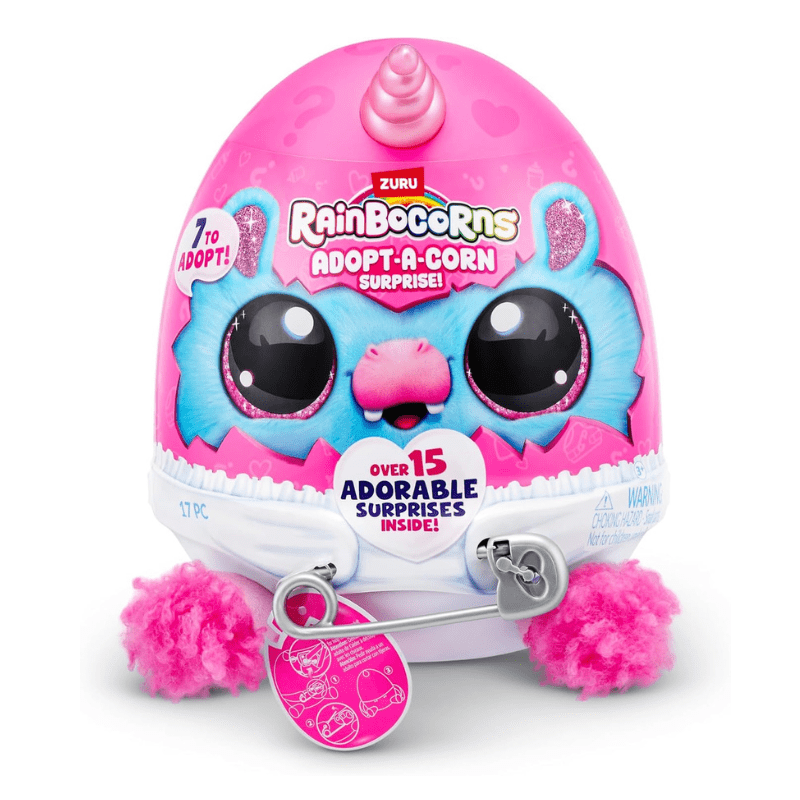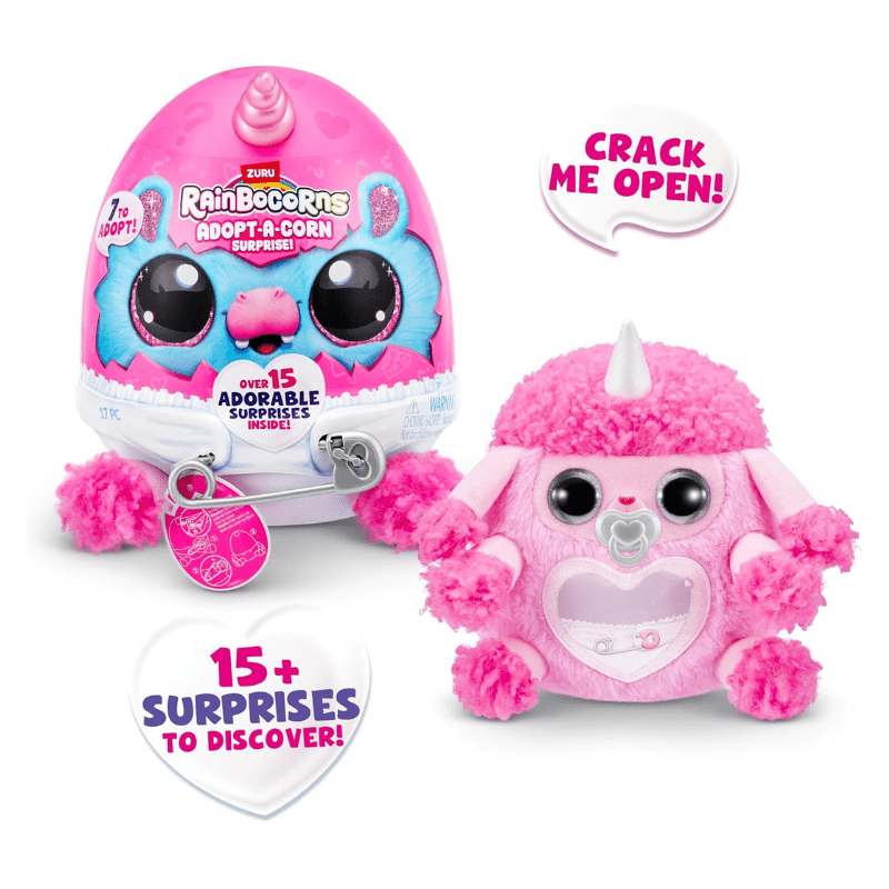 Adopt a brand new bestie with all-new Adopt-A-Corns! The cutest baby Rainbocorns are crawling around Rainboville and need your love and care! Unclip your Adopt-A-Corn out of its diaper for adventurous fun and clip back once it’s time to rest. Don’t forget about the pacifier! There are 7 Adopt-A-Corns to adopt. Each egg comes with over 15 adorable surprises inside!