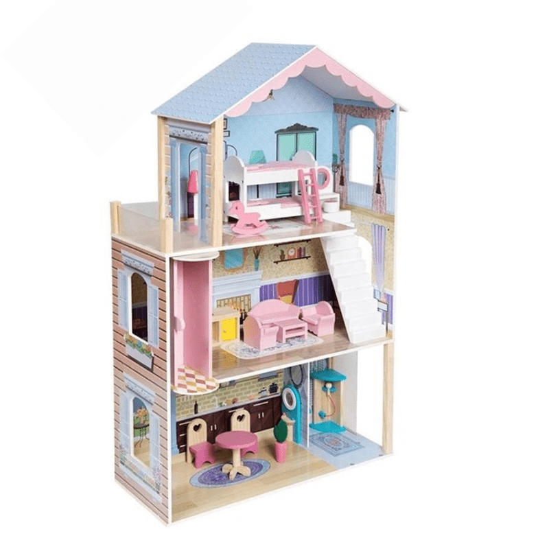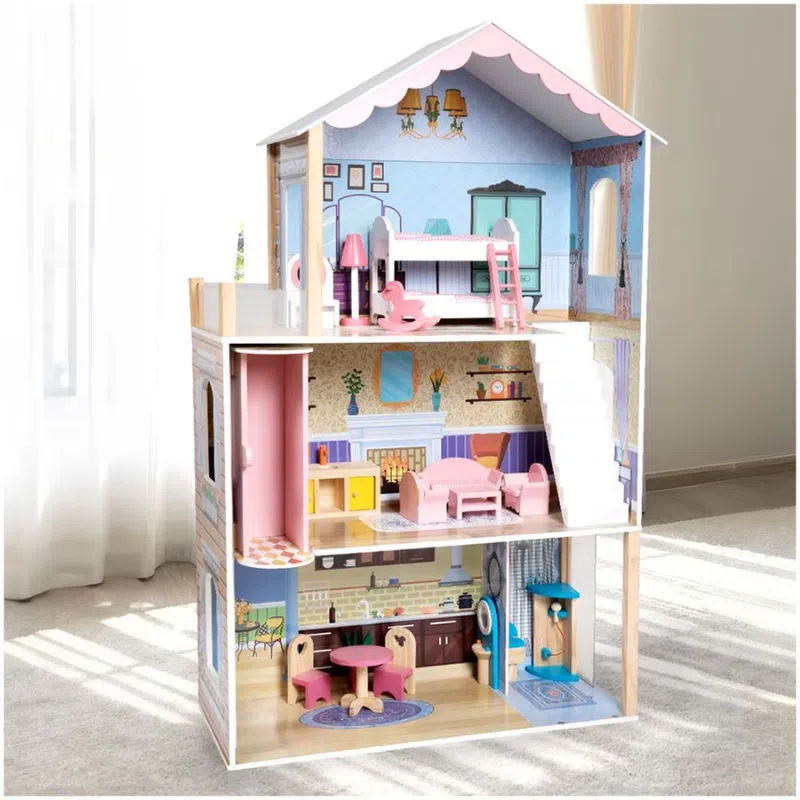 Deluxe 3-Story Wooden Dollhouse with Furniture Set
