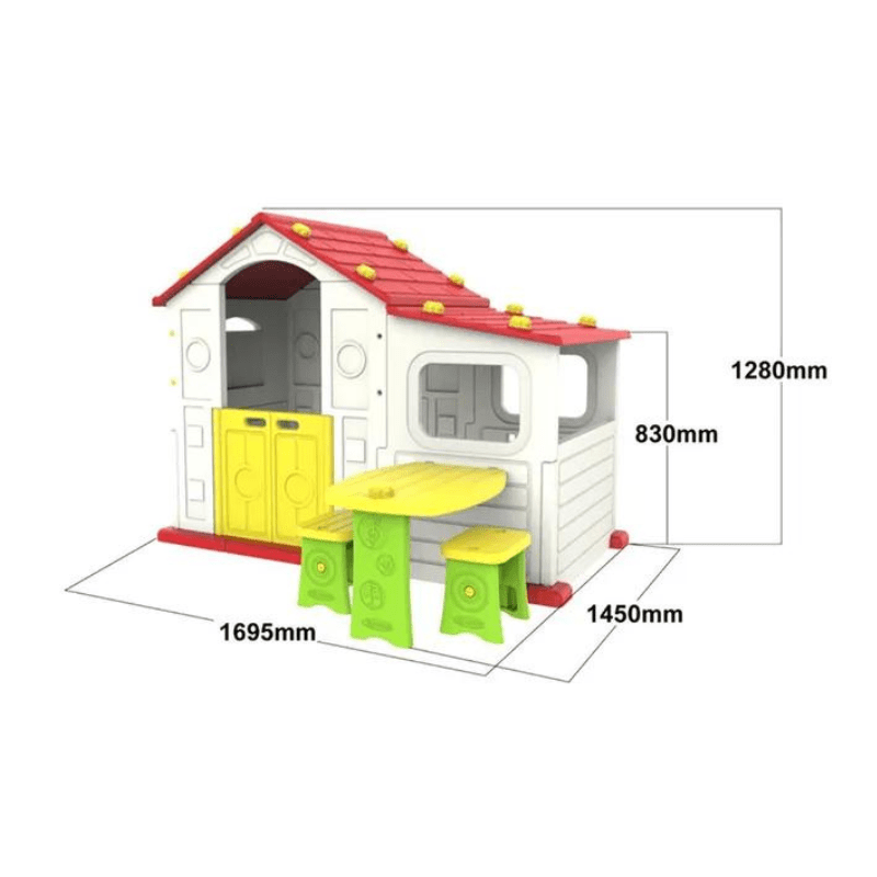 Sun N Shine Playhouse W/ Swing, Picnic Table & Chairs