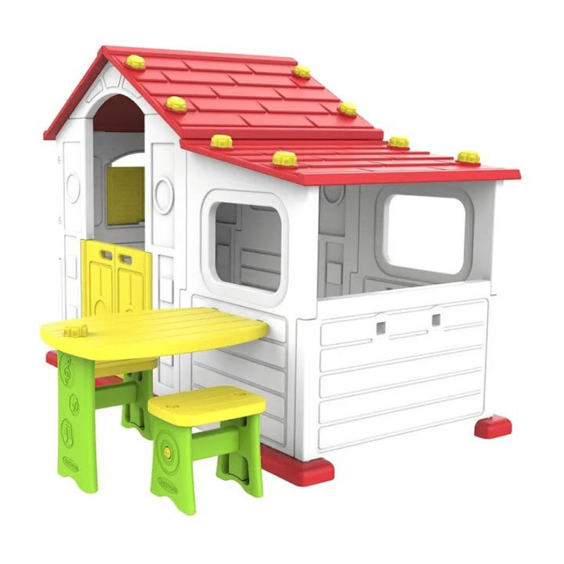 Call in your kids’ playmates because there’s a new ultimate hangout spot in town! Playing house is one of the greatest joys for young kids and this stylish playhouse will keep your child entertained for hours. This beautiful, modern playhouse is the perfect place for your child to let their imaginations run free. , , Mini Panda’s Tomo Playhouse is equipped with tables and chairs that encourages pretend play. It encourages creative and imaginative play with its makeshift table and 2 extra benches outside. Kids can run in and out, invite friends over to play with and enjoy the durable yet homey feel.